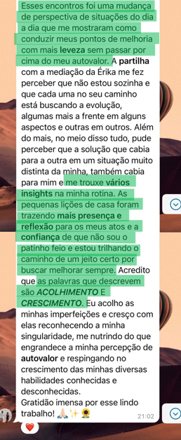 Minha missão é compartilhar os caminhos que funcionaram para mim e minhas alunas e ver cada vez mais pessoas BRILHANDO no palco de suas próprias vidas!